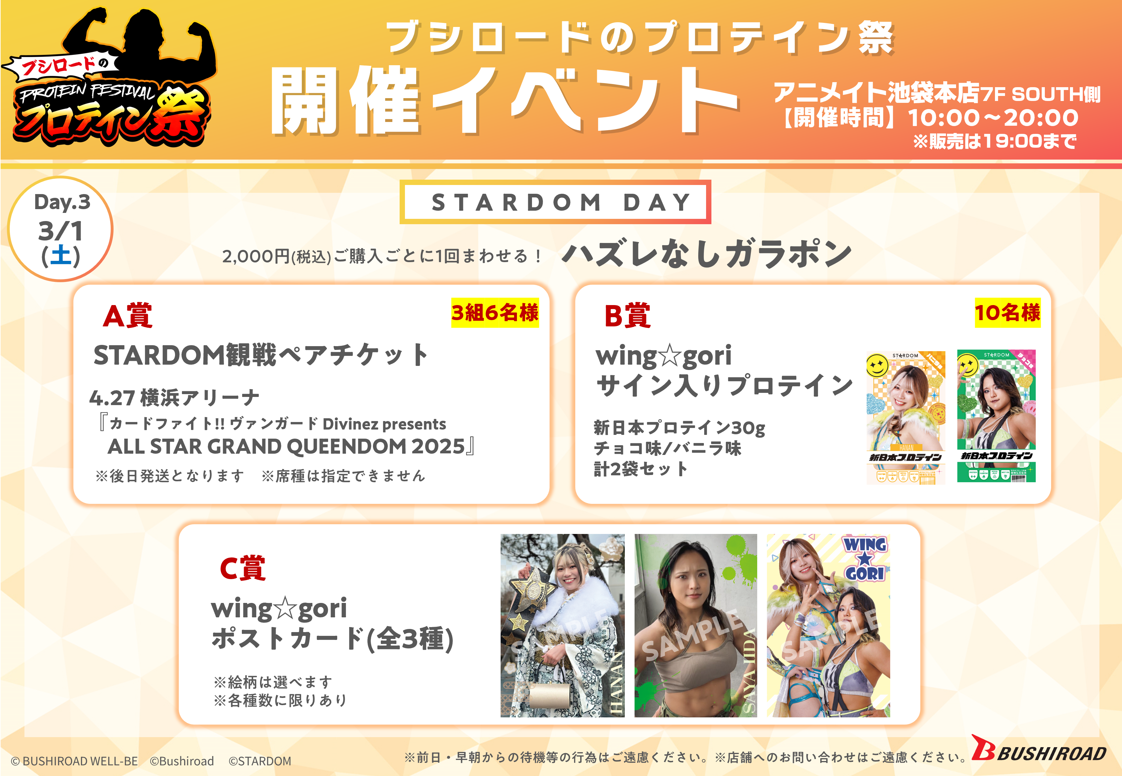 ★会場で税込2,000円ご購入ごとに、選べる!STARDOM選手のブロマイドをプレゼント!