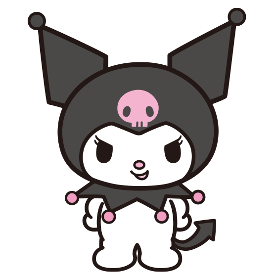 クロミ(Kuromi)は、サンリオのウサギの女の子で、マイメロディの自称ライバルです。トレードマークは、ドクロマークが付いた黒いずきん。見た目は悪魔風で乱暴者ですが、実は乙女チックな一面を持ち、かっこよく振る舞いたいと思っています。